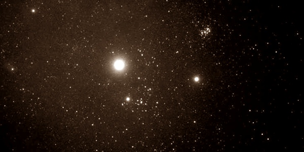 M7 open cluster: Naked-eye visible. A deformed butterfly pattern then, for I seem to forever have some difficulty distinguishing this from M6. The cluster is more open with 5 more dominant stars in a cross-like pattern.
